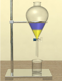 तो चित्रानुसार दोनों पदार्थो की परत बन जाती है , अब इन दोनों को पृथक करने के लिए इसका वाल्व खोल दिया जाता है और नीचे एक पात्र रख दिया जाता है , पहले पानी आने लगता है अर्थात वाल्व खोलते ही पिला पदार्थ बाहर आने लगता है और बाहर रखे पात्र में इक्कठा हो जाता है।