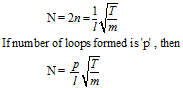 यदि डोरी पर m भार लटका हुआ है , डोरी में तनाव T उत्पन्न हो रहा है , डोरी की लम्बाई l है और लूपों की संख्या p है तो स्वरित्र की आवृति n होगी