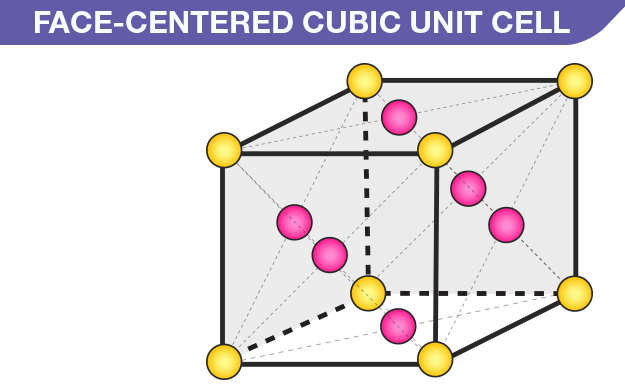 इस प्रकार की एकक कोष्ठिका में 8 परमाणु इसके कोनो पर उपस्थित रहते है तथा 6 परमाणु इसकी सभी 6 फलको पर स्थित रहते है।