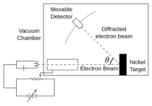तंतु को जब गर्म किया जाता है तो यह तंतु इलेक्ट्रान पुंज उत्सर्जित करता है जो त्वरक द्वारा त्वरित हो जाता है तथा समान्तरकारी छिद्र द्वारा एक सीधी रेखा के रूप में छिद्र से निकलता है और निकिल क्रिस्टल प्लेट पर टकराता है , टकराने के बाद यह इलेक्ट्रान पुंज सभी दिशाओं में विवर्तित हो जाता है , विवर्तित पुंजो में एक पुंज डिटेक्टर (संसूचक) पर पहुँचती है जो एक धारामापी से जुड़ा हुआ है।