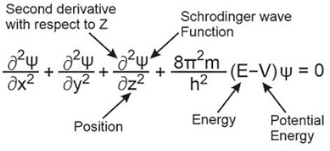 श्रोडिंगर ने उपरोक्त समीकरण को हल करके तरंग फलन (Ψ) का मान ज्ञात किया। तरंग फलन तरंग के आयाम को व्यक्त करता है।