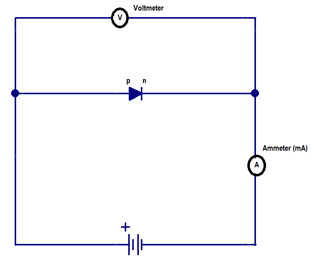 इस अभिलाक्ष्णिक वक्र को प्राप्त करने के लिए निम्न परिपथ के अनुसार डायोड को जोड़ा जाता है।