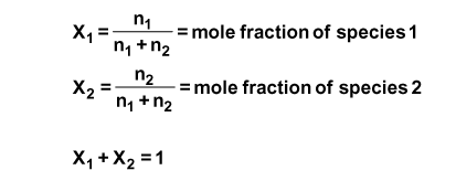 पदार्थ A के मोल अंश = n1/(n1 + n2)