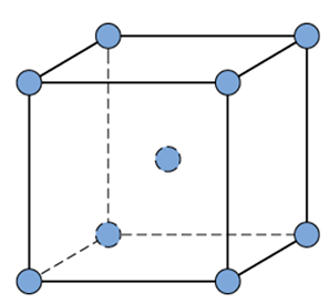 (i) काय केन्द्रित या अंत: केंद्रित एकक कोष्ठिका (body centred unit cell) : इस प्रकार की एकक कोष्ठिका में कोने पर अवयवी कणों के अतिरिक्त एक अवयवी कण कोष्ठिका के केंद्र में उपस्थित होता है।