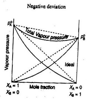 एथेनोल व जल मिश्रण धनात्मक विचलन दर्शाता है , शुद्ध एसिटोन तथा क्लोरोफोर्म मिश्रण ऋणात्मक विचलन